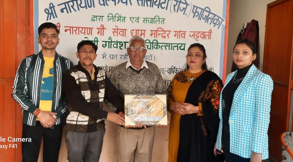 गौ सेवा व मानवता की सुख समृद्धि में काम कर रही श्री नारायण वैल्फेयर सोसायटी की ओर गाँव जट्टवाली में बनाए गए देसी गौवंश के चिकित्सालय श्री नारायण गौ सेवा धाम मन्दिर में उपचाराधीन बिमार व दुर्घटनाग्रस्त देसी गौवंश के लिए एक पंचरत्न सवामणी की सेवा समाजसेवी श्री राम निवास बिहाणी ने पारिवारिक सुख समृद्धि व एक सवामणी की सेवा समाजसेवी श्री शिव कुमार गोयल ने अपनी पत्नी श्रीमती अंजु गोयल के जन्मदिन पर परिवार सहित उपस्थित होकर करवाई व गौमाता का आशीर्वाद प्राप्त किया। सोसायटी के ने बताया कि सोसायटी की ओर से दोनों परिवारों का हार्दिक आभार प्रकट किया गया।